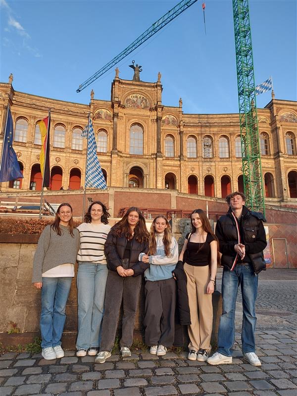 Das Team vor dem Maximilianeum: Annika und Julia, die beiden Jurorinnen Maya Leyh und