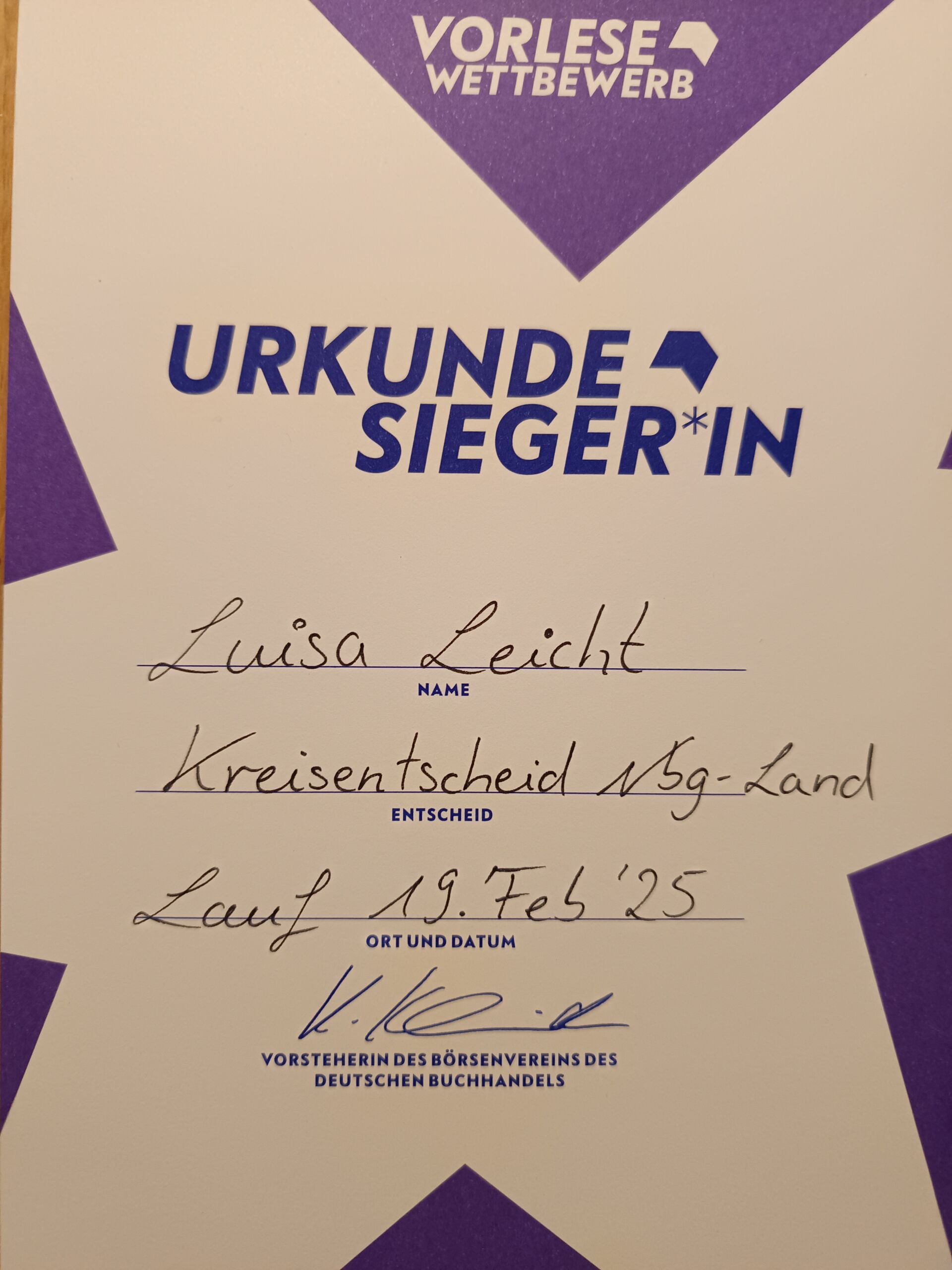 „Es hat sehr viel Spaß gemacht“ – Luisa Leicht gewinnt den Vorlesewettbewerb Deutsch 2024