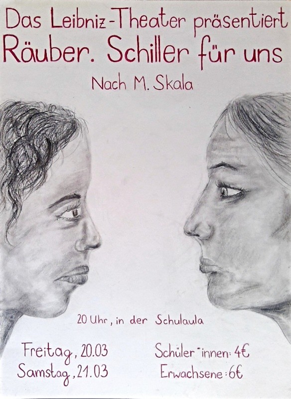 Theaterkarten für 4,00 Euro für Schüler und Schülerinnen und 6,00 Euro für Erwachsene gibt es von Dienstag, 17. März, bis Freitag, 20. März, in der ersten Pause in der Schulaula und an der Abendkasse.