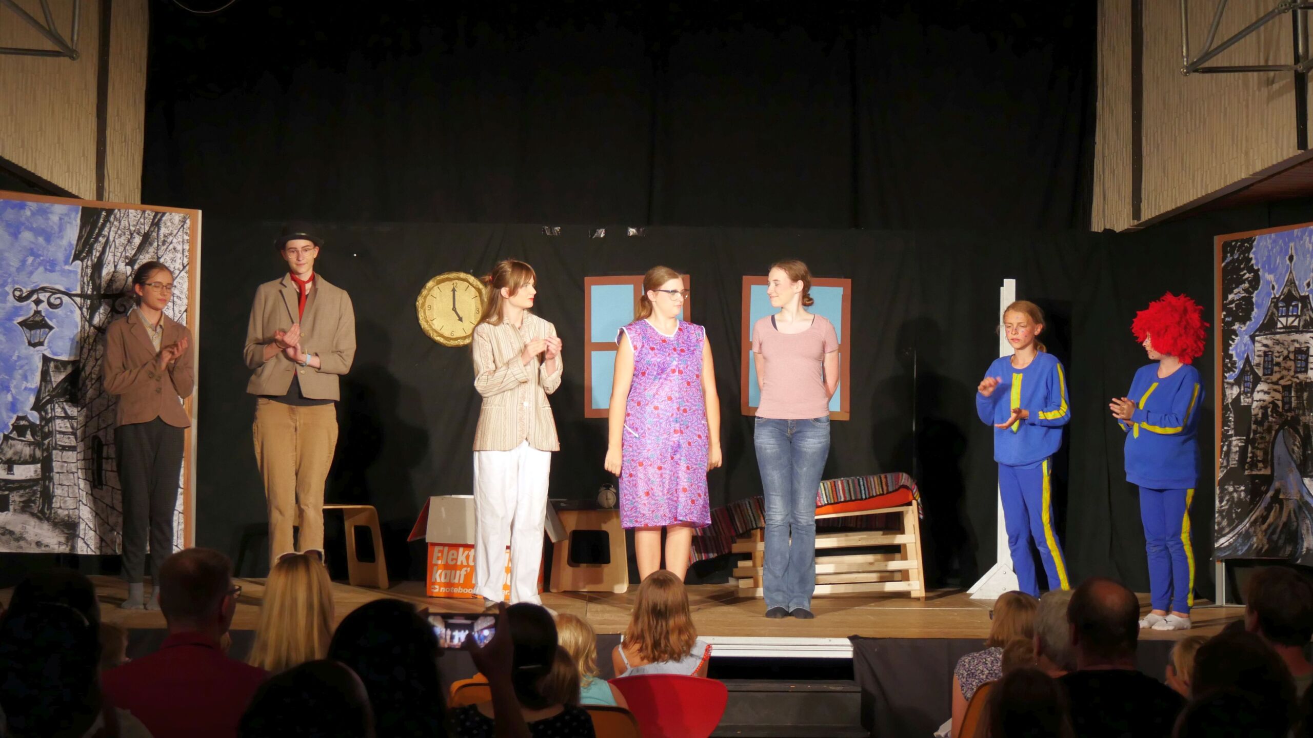 Die Unter -und Mittelstufen-Theatergruppe des Leibniz-Gymnasiums führte am 8.und 9. Juli 2023 ihr neuestes Stück „Das Sams“, frei nach dem Kinderbuch von Paul Maar, in einer bis auf den letzten Platz besetzten Theateraula auf.