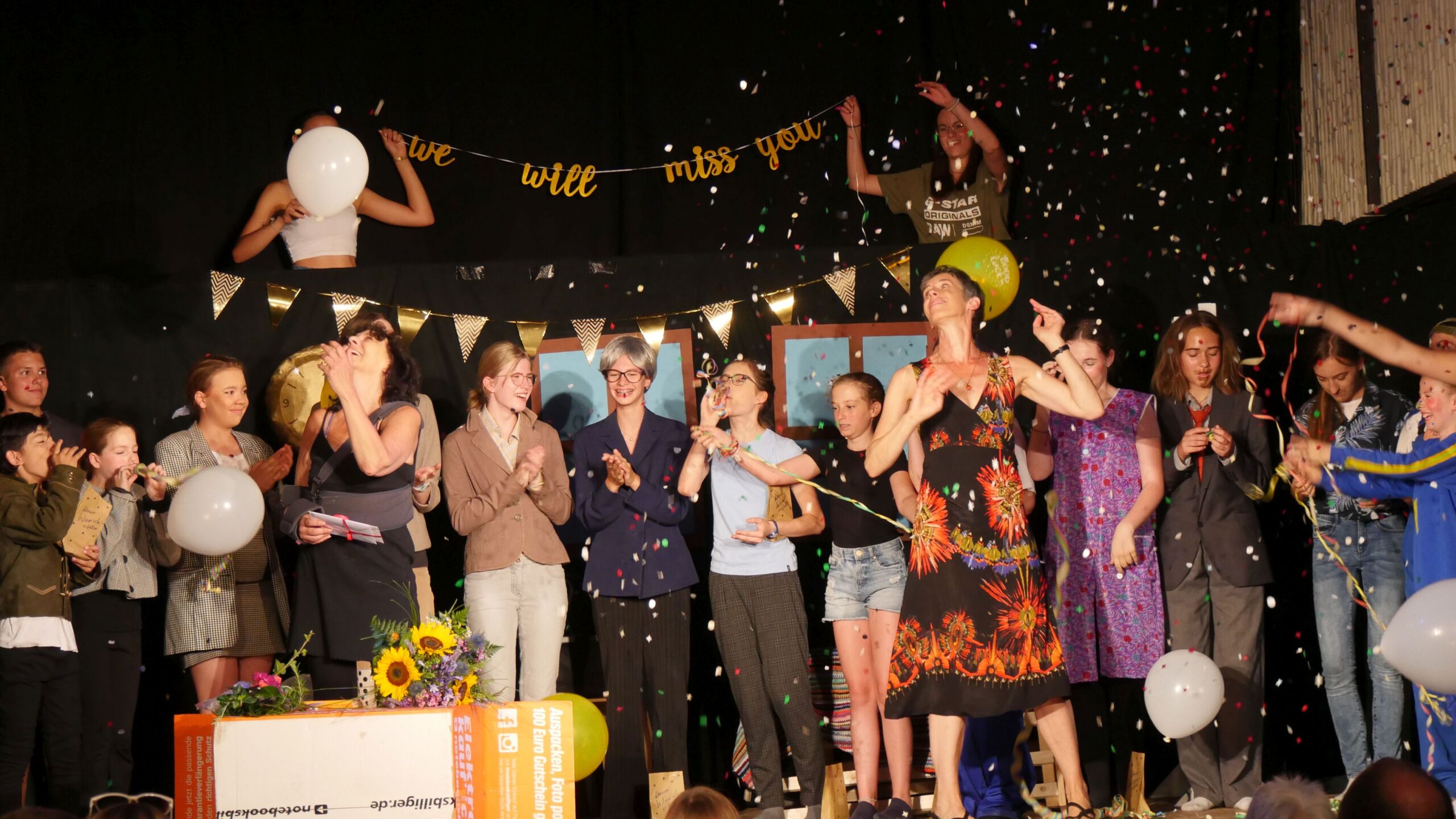 Die Theater-Crew hat zum Abschluss der langjährigen Theaterlehrerin Ursula Schweizer Kittel, die 25 Jahre lang dem Unter- und Mittelstufentheater durch selbst verfasste oder kreativ umgeschriebene Stücke sowie unvergessene Inszenierungen ihren Stempel aufgedrückt hat, eine würdige Verabschiedung bereitet und bedankt sich von ganzem Herzen bei ihr für die vielen schönen Theatererlebnisse und -erfahrungen!